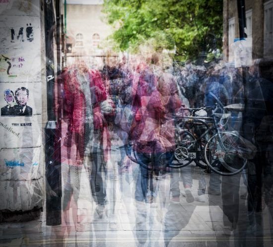 Tránsito San Fermín es una ampliación temática de la serie Tránsito. Pamplona se transforma durante sus fiestas mostrando un imparable tránsito de personas venidas de todo el mundo, reflejada de...