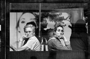 Visualmente el vidrio de una ventana móvil abierta a la ciudad permite encuadrar el efecto de un desplazamiento donde, en el medio de la transparencia y el reflejo, se superpone la nitidez de un gesto o de una mirada aislada, pero la movilidad y el cruce no resuelven la soledad, el aislamiento de los personajes… Incluso cuando aparecen juntos, la compañía es distante porque la composición dibuja y recorta las emociones independientes de estas vidas en tránsito que viajan con la mirada perdida y protegida por un vidrio. El marco de sus ventanas delimita y establece a la vez diferentes niveles de profundidad, entre la claridad de un rostro en primer término y la absorción del exterior que se pierde en los planos internos, dos tránsitos que se encuentran en diferentes direcciones, donde el reflejo nos aboca a la sombra y a los pliegues visuales que construyen los tiempos de unas imágenes que están entre la aparición y la desaparición, como diría Berger.