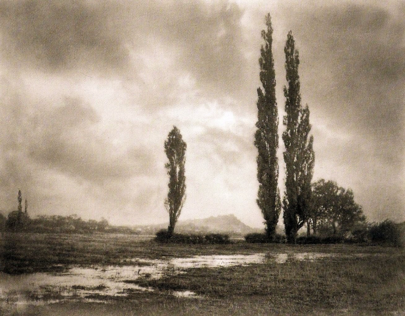 Así, de manera paradójica y en un insolente maridaje con la pintura, lafotografía atinó entonces (finales del XIX) a dar con el más conspicuo camino para lograr la aprobación social e introducirse en los hogares de la burguesía. Las veladuras, los desenfoques, los paisajes desvanecidos, las referencias mitológicas, la evocación melancólica de paraísos perdidos y la representación de escenas bucólicas conformaron un peculiar estilo denominado “Pictorialismo” que, paralelo al impresionismo y enraizado en los grandes géneros plásticos del XVII –el paisaje y la figura- se mantuvo en boga hasta el primer cuarto del pasado siglo.