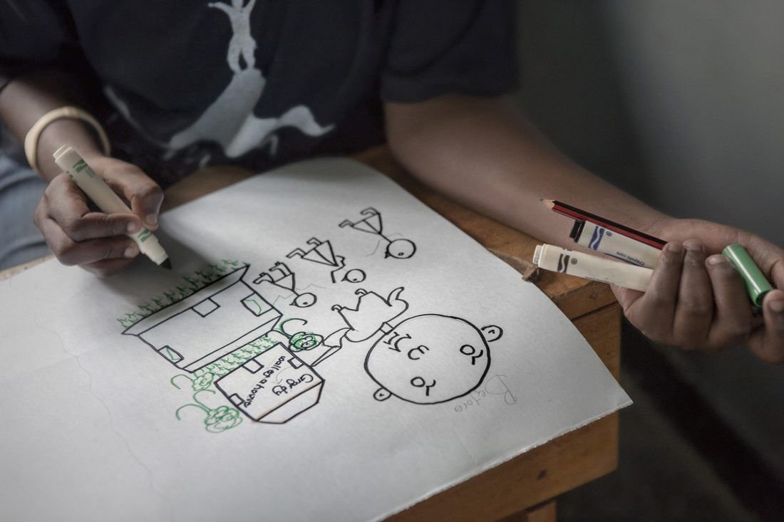 Art is the expression of the soul. When day-to-day existence is a fight for survival, time and space for creation is reduced or disappears. This work is a claim for the universal right to enjoy the arts, even for the young inhabitants in the slums of Kampala, Uganda.