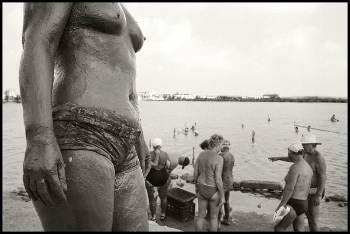Con la devoción propia de quien abraza una nueva fe o con el escepticismo de quien nada tiene ya que perder, se afanan en un ritual de sal y cieno que sugiere, más que una terapia de incierta eficacia científicamente demostrable, un ancestral rito iniciático.