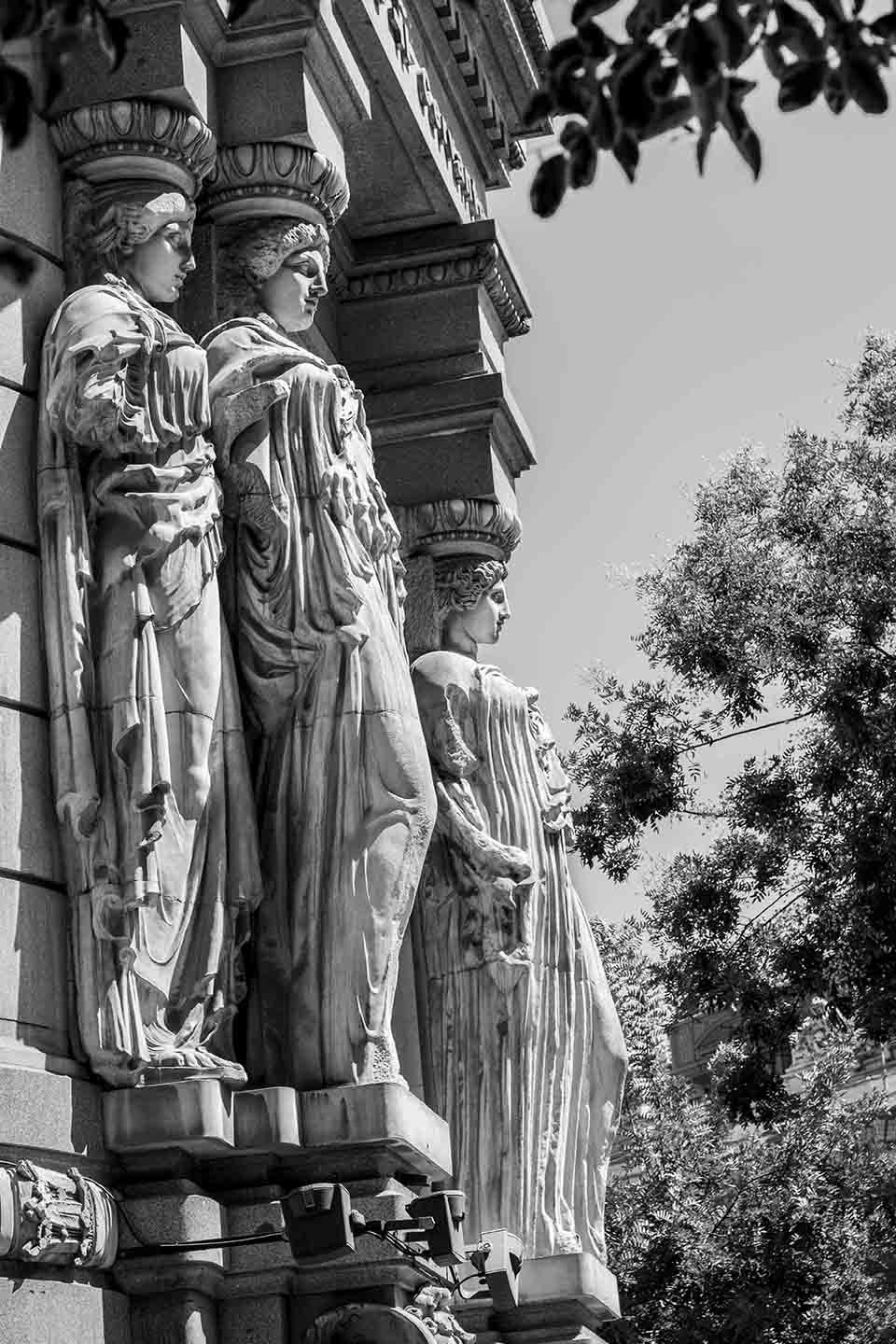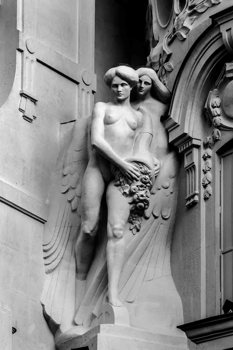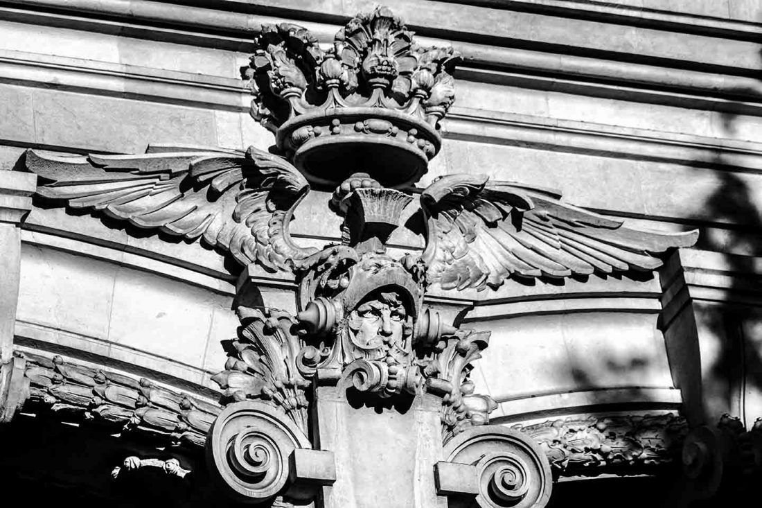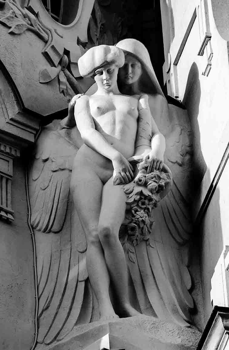 Llevo años mirando hacia arriba cuando camino por el centro de Madrid. Siempre me han maravillado las esculturas que adornan las fachadas de algunos conocidos edificios de la Gran Vía, Alcalá, Arenal y otras calles tan andadas. Intento imaginar cómo fueron diseñadas, modeladas, colocadas allí arriba; quién lo hizo, qué representan…, en fin que es muy entretenido. Cuando empecé a fotografiarlas sentí ansiedad por descubrir más y estudiar la luz que, según la hora del día o la época del año, las ponían a punto de disparo. Me enamoran. Esta es una muestra del resultado de mis paseos, por si alguien tiene en común conmigo disfrutar de estas bellezas.