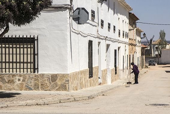 Mosaico de colores. Detalles aislados del puro blanco, azul, amarillo; suave dorado de poniente. Trocitos de pequeñas imágenes que retratan el universo manchego.