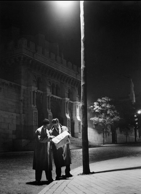«A los 15 años compré en los almacenes Sepu de Madrid, una cámara Kodak Baby Brownie de 13 ptas, cuyo visor era un recuadro de hojalata, sin tener la más remota idea de lo que era un trípode o saber lo que era una ampliadora. Pero ya mucho antes, de jovencito, en la plaza de la Encina, 14 en el estanco de mi padre, hacíamos “pinitos” con los recortes de las películas que desechaban del cinematógrafo, revelando al sol en los trozos de papel sensible que conseguíamos por muy pocos céntimos; negativos que se nos borraban de inmediato a la luz, si no fuera porque alguien nos observase un día y nos indicara que metiéramos lo revelado en agua de sal..